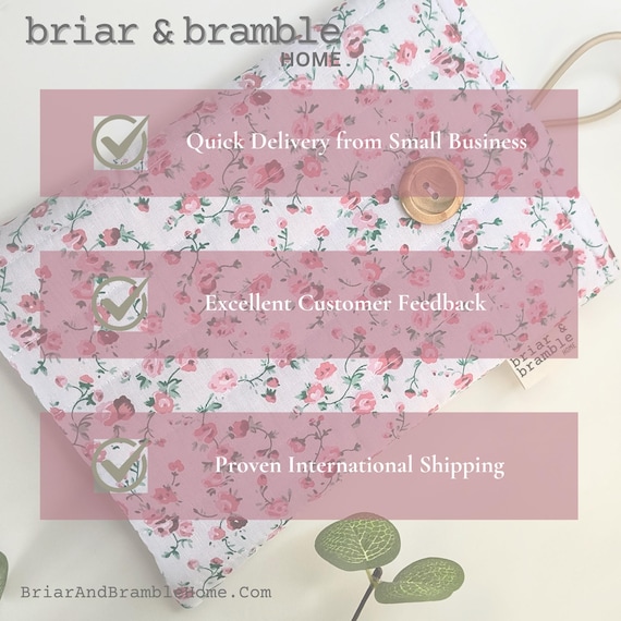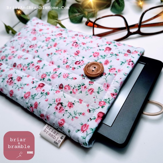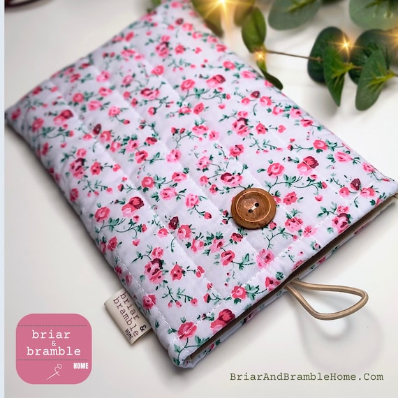 Handy Kindle Sleeve in this cute white and pink traditional roses design, this sits elegantly on your bedside table or in your handbag. Ideal covers for journaling notebooks or novels alike, available in a variety of different sizes for Kindles or Books. Custom options are available, just ask.