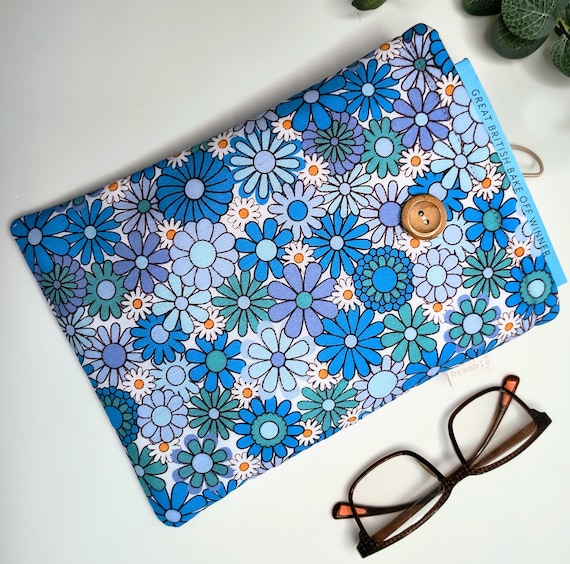 Also available in vibrant orange, red and greens https://www.etsy.com/uk/listing/4408429877/vintage-flower-power-book-sleeve-padded?sr_prefetch=1&pf_from=shop_home&ref=shop_home_active_2&sca=1&sts=1&logging_key=a5890e685a6ab98f03c41a2e7550a339ef0ca8d6%3A4408429877