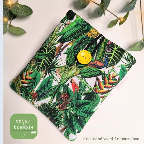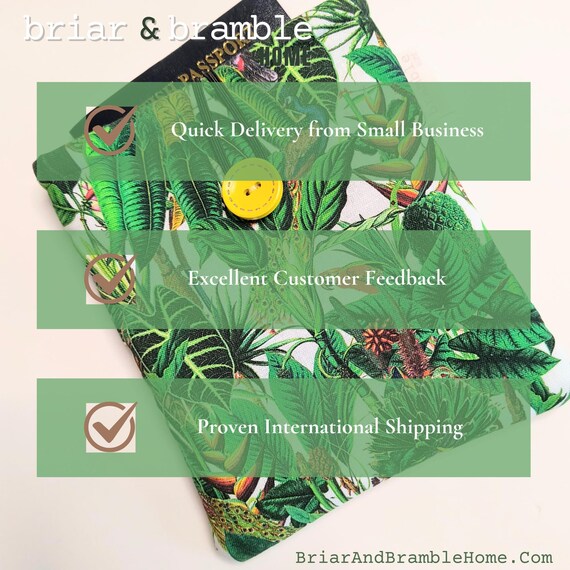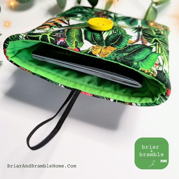 Vibrant coloured pouch featuring Toucan or tropical bird rain forest print. Handy size for holding passports and GHIC cards whilst travelling or for a small phone or air pods. A variety of fabric options are available for the passport holders in my store.