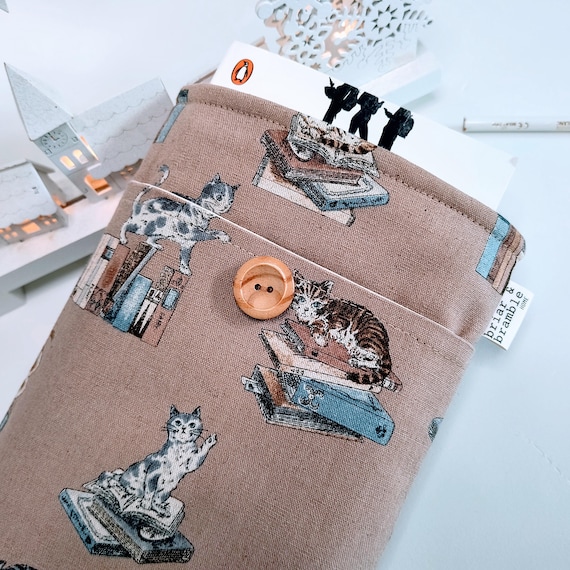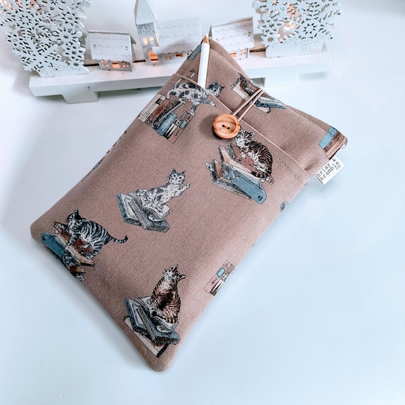 Padded Book Sleeve for Cat Lover: Linen Pouch with front pocket