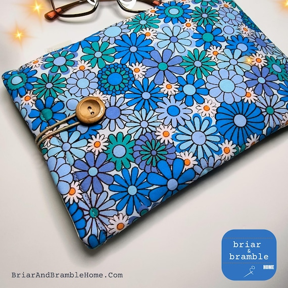Vintage Flower Power Book Sleeve - Padded Book Pouch for Reading Lover, Blue