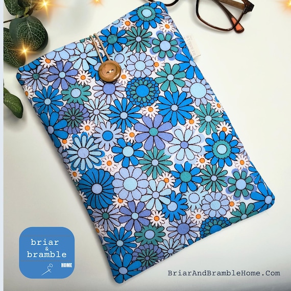 Also available in vibrant orange, red and greens https://www.etsy.com/uk/listing/4408429877/vintage-flower-power-book-sleeve-padded?sr_prefetch=1&pf_from=shop_home&ref=shop_home_active_2&sca=1&sts=1&logging_key=a5890e685a6ab98f03c41a2e7550a339ef0ca8d6%3A4408429877